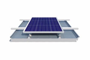 Solar panels installed on an existing metal roof using compatible mounting profiles, upgrading the building with clean energy without major structural changes.